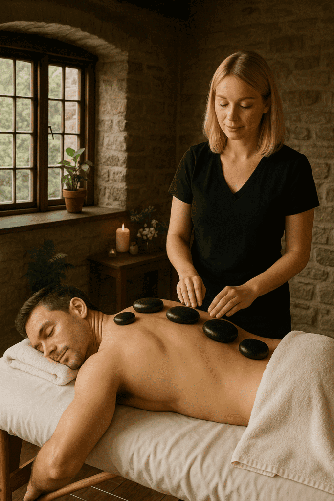 Warm stones are placed on energy centres such as the back, hands, and shoulders to gently open pathways and invite release. Massage strokes using the heated stones follow, allowing your muscles to relax more deeply and your nervous system to soften.
