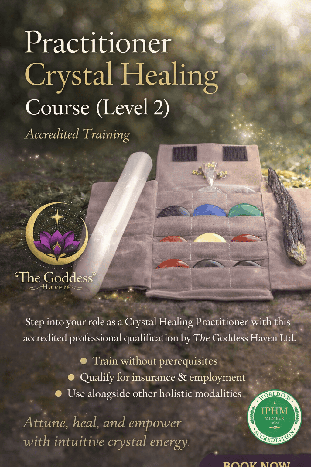 Step into your path as a professional crystal healer with this one-day accredited training from The Goddess Haven Ltd, a fully certified and insurable course designed to either stand alone or beautifully complement other holistic and therapeutic modalities.